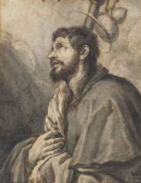 | A pilgrim saint with his staff and gourd, perhaps Saint Roch | |