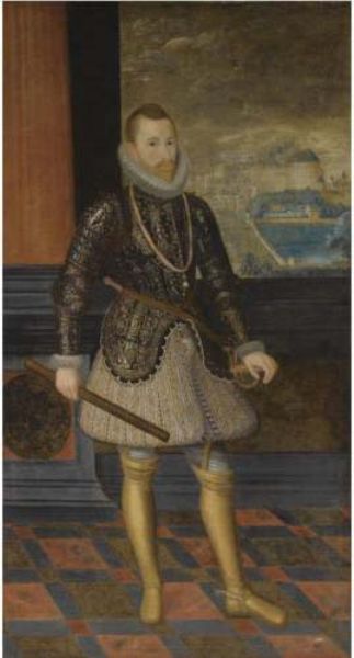 | PORTRAIT OF A NOBLEMAN, BELIEVED TO BE THE ARCHDUKE ALBERT OF AUSTRIA (1559-1621), FULL LENGTH, WEARING ARMOUR AND THE ORDER OF | |
