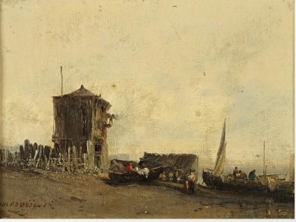 Bateaux à marée basse et la tour de guet