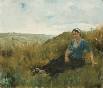 Femme assise dans les champs