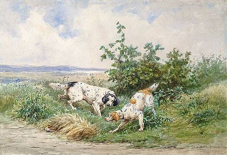 DEUX EPAGNEULS CHASSANT UNE PERDRIX