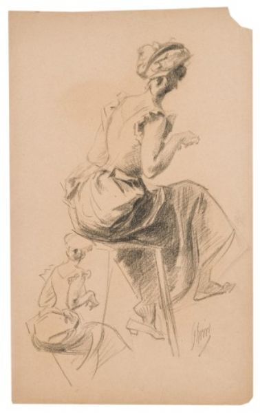Deux études de femme assise de dos