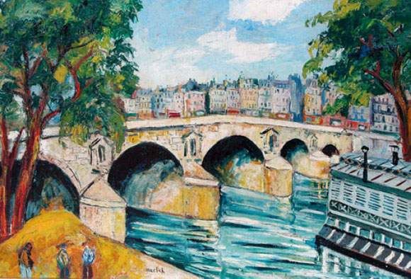 Le Pont Marie et les bateaux-lavoirs sur la Seine à Paris