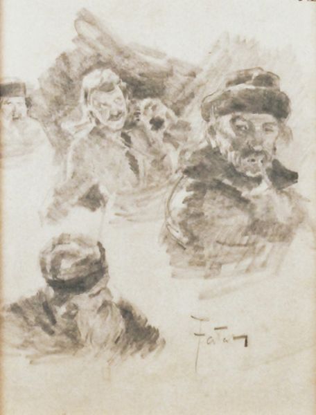 Studia głów mężczyzn do kompozycji „Powrót z niedźwiedziem