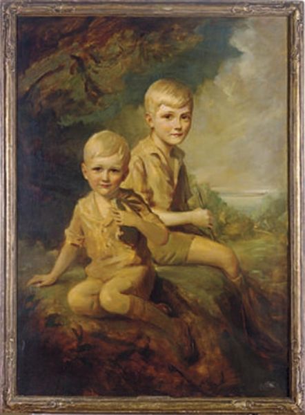 Portrait of two young boys seated in a verdant landscape