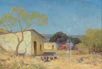SUMMER LANDSCAPE WITH POULTRY OUTSIDE FARM BUILDINGS