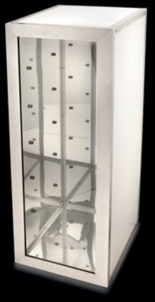 Aluminum mirrors, stainless steel, glass, rubber and wood