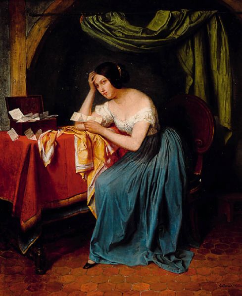 Junge Frau am Tisch vor einem Kästchen mit Briefen