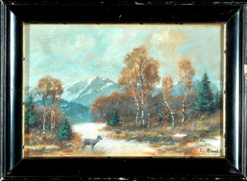 Reh in Moorlandschaft mit Bergen im Hintergrund