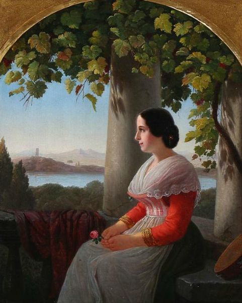 | The grapevines provide shade for a woman in a loggia on Capri | |
