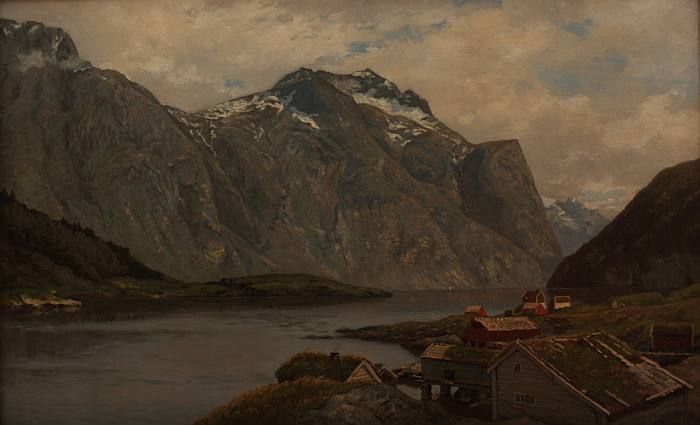 Dorf an norwegischer Fjordlandschaft