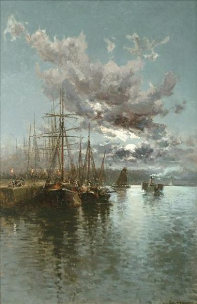 Moonlit Harbour With Moored Vessels