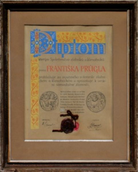 Diplom Společenstva zlatníků a klenotníků