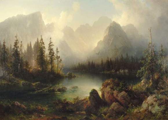 Lever du jour au bord d'un lac de montagne (Bergsee)