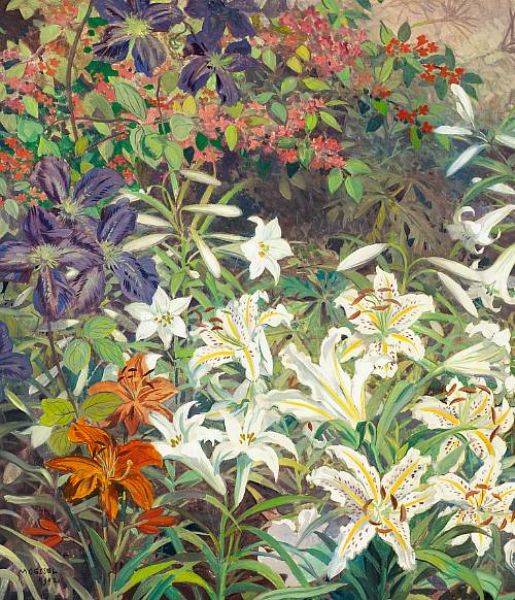A Garden with Orange and White Tiger Lilies