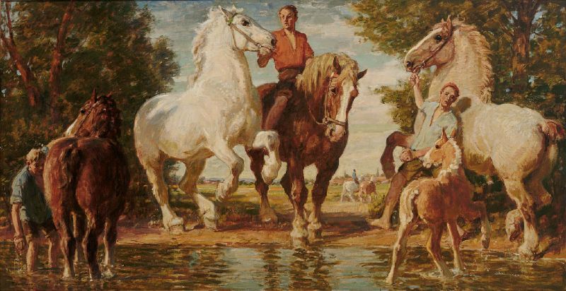 | Pferde an der Tränke an einem prachtvollen Sonnentag | |