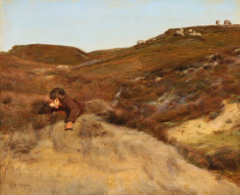 A shepherd boy amongst heathery hills