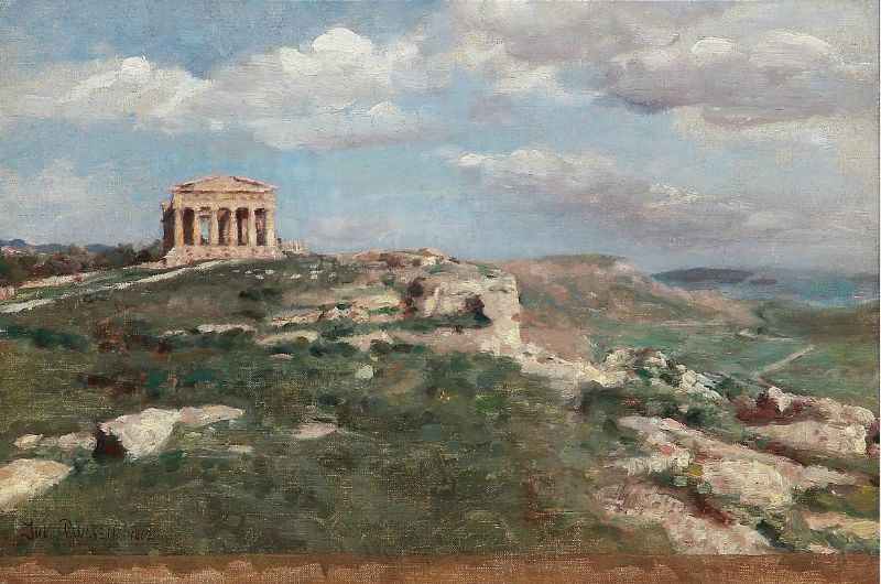 A Sicilian landscape with a temple in Girgenti.