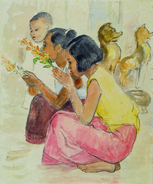 studierte an der Akademie in Paris, dann in Rom und Athen, Junge Thais in Tempel
