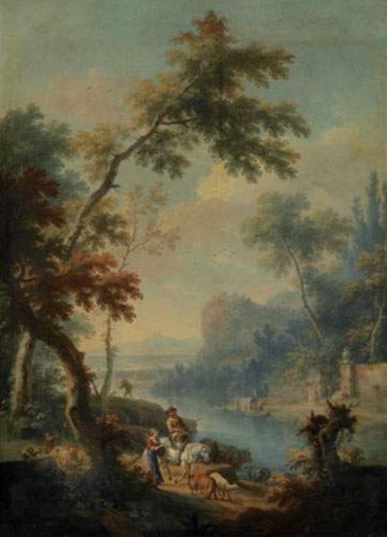 Bergers devant un paysage de rivière