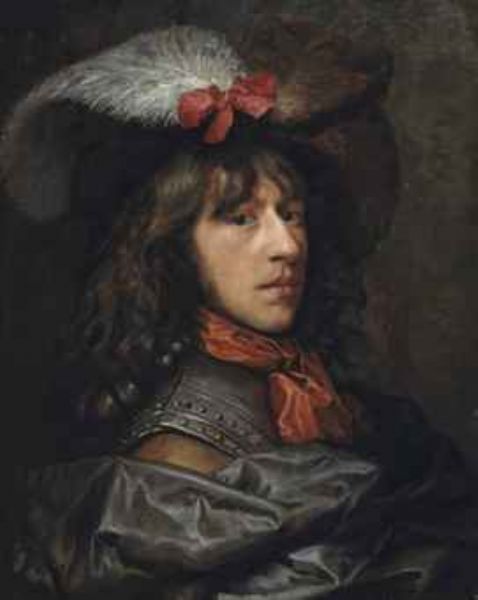 | Portrait of a gentleman, bust-length, in a breastplate with a grey wrap, and a feathered hat | |