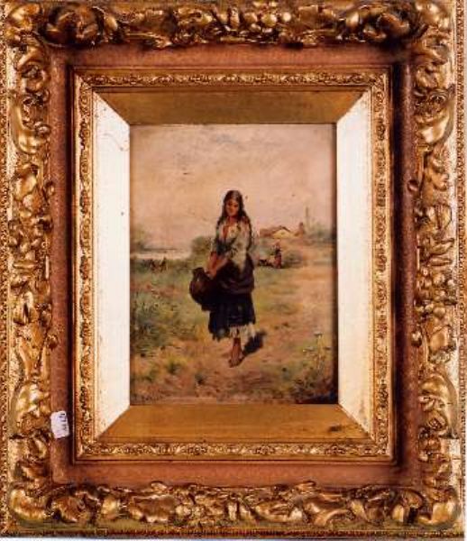 Ungarische Landschaft mit Personen, im Vordergrund ein Mädchen