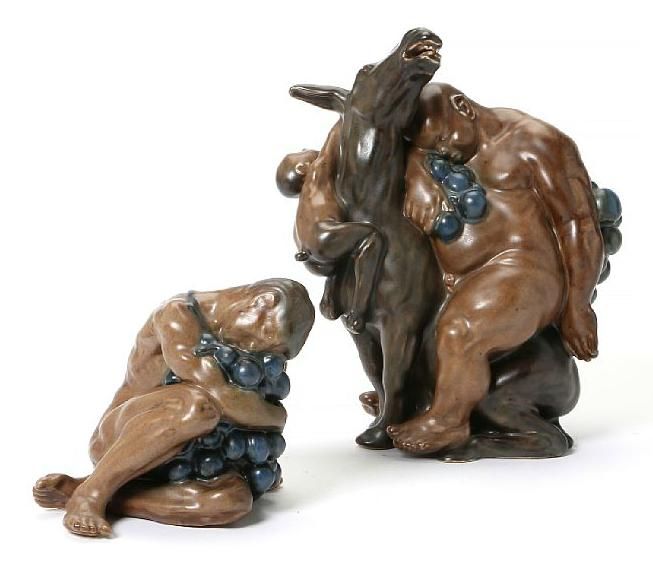 | Two stoneware figure groups modelled in the shape of Bacchus on a donkey and a figure with grapes | |