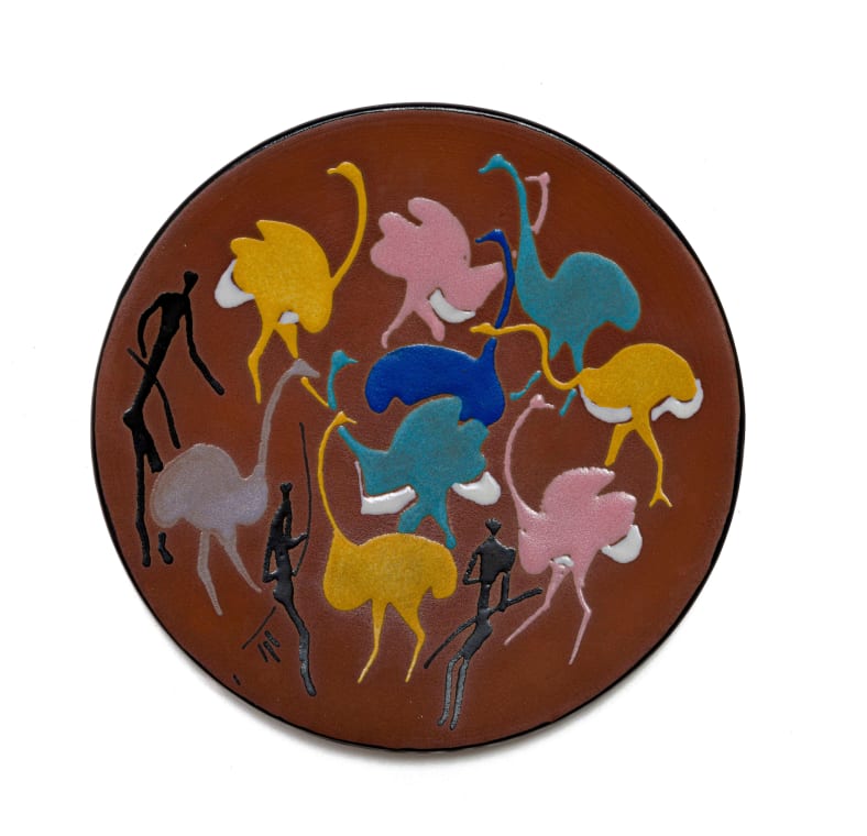 Small plate decorated with San figures and ostriches