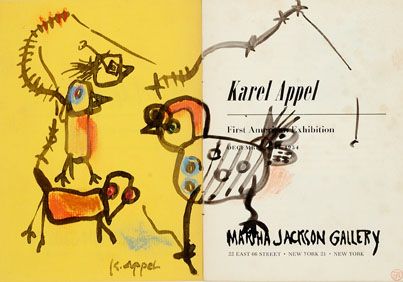 | Vier dieren geschilderd op de voor- en achterzijde van de catalogus van Appels 'First American Exhibition 1954' bij de Martha Ja | |