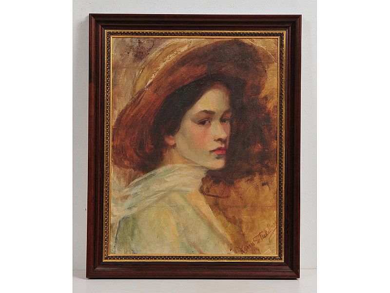 Porträtt av flicka i hatt