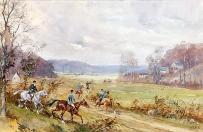 | Rallye Gaiement, Vraisemblablement en vallée de la Cisse Au premier plan, le baron Karl Reille, sur son cheval préféré | |
