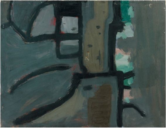 Sans titre fond gris Huile sur panneau