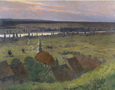 | Abendstimmung im Tal. Idyllischer Blick in Schwarzwaldtal mit kleinem Dorf am Hügel und ruhigem Flusslauf in der Ebene. | |