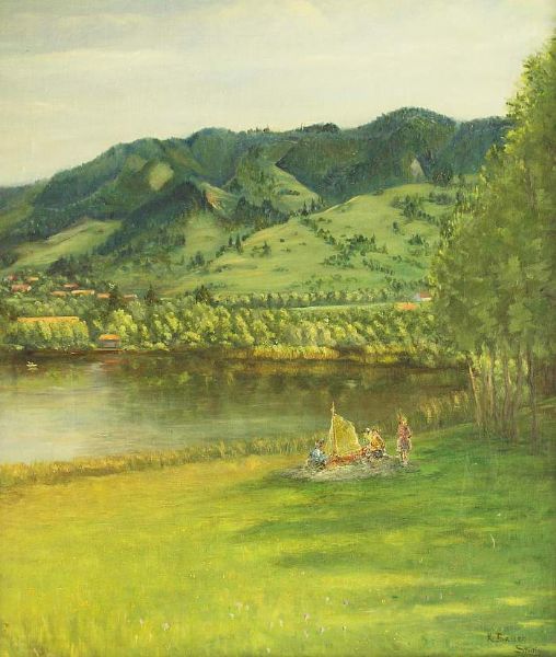 Spielende Kinder auf der Wiese am Titisee/Schwarzwald.