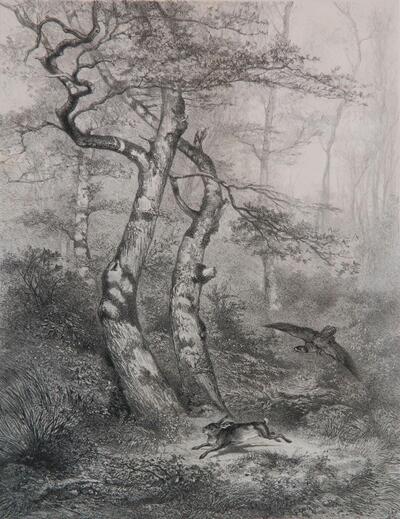 | Animals and Landscapes in Nature: Lievre Poursuivit par un Autour | |