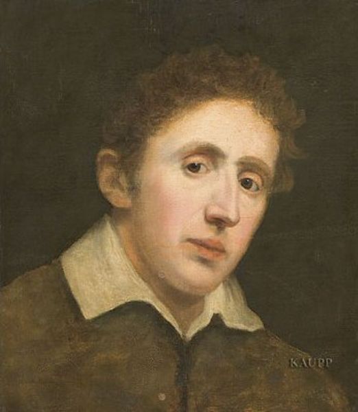 | Brustbildnis im Dreiviertelprofil nach rechts vor dunklem Fond eines kritisch blickenden jungen Mannes mit kurzem rotem Haar | |