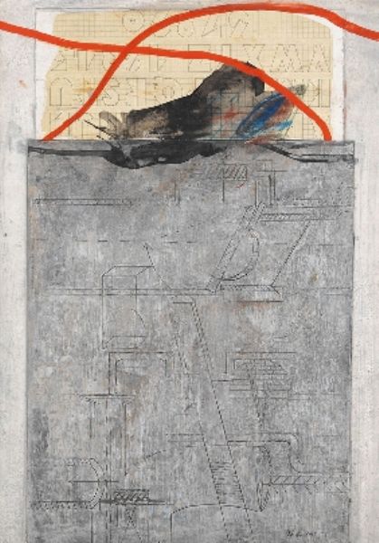 Collage Coloured pencil drawing and gouache
