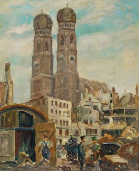 | Blick von der Wirtschaft "Hundskugel" zur Frauenkirche in München | |