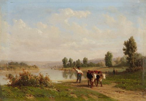 RIVER LANDSCAPE WITH SHEPHERDS AND COWS