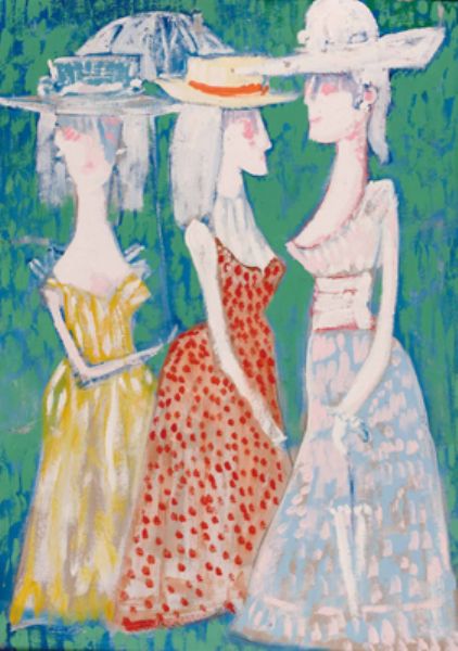 Drei Damen mit Sonnenschirm