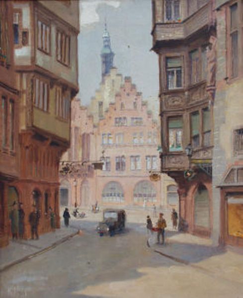 Blick auf den Römer in Frankfurt am Main mit Figurenstaffage