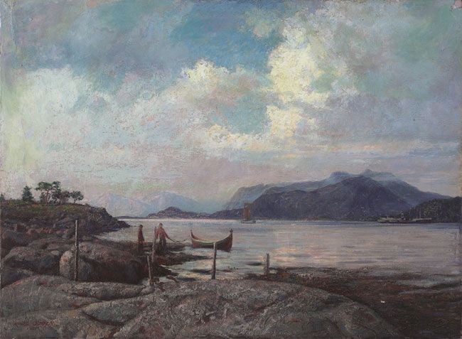 Mountain Inlet with Figures and Boats