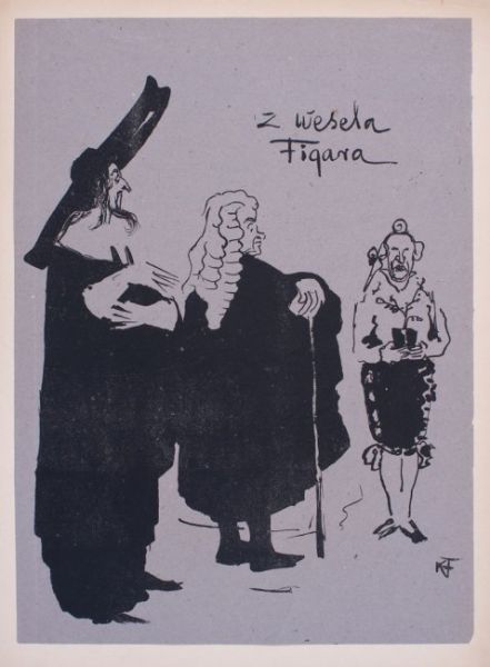 | Marian Jednowski, Adolf Walewski i Leon Stępowski w sztuce Piotra Augusta Carona Beaumarchais „Wesele Figara” | |