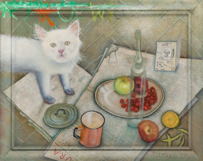 Still life with a white kitten