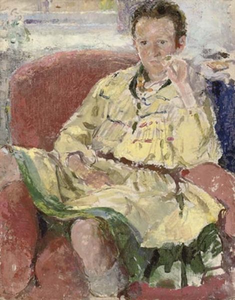 | Portrait of Charles Higgins, the artist's husband, seated three-quarter-length, wearing a kilt | |