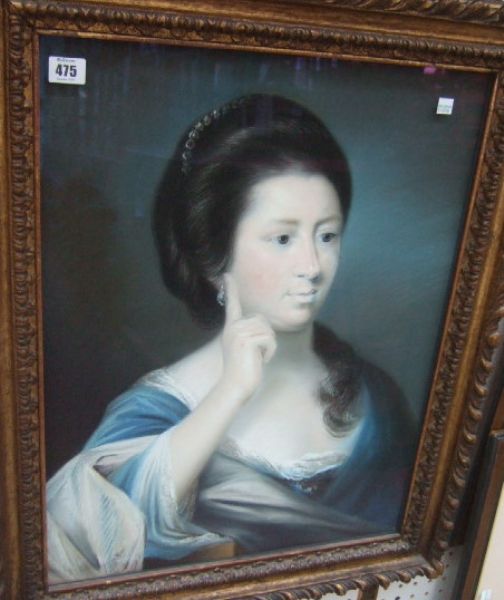 | Portrait of a lady, wearing a blue dress and pearl earring; Portrait of a lady, in a blue dress with pearls in her hair | |