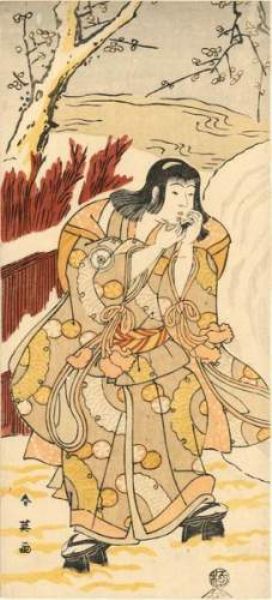 | Hosoban tate-e, jeune garçon en costume de danseur à côté d'une boule de neige. | |