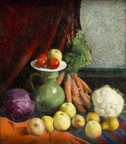 Martwa natura na tle rubinowej kotary