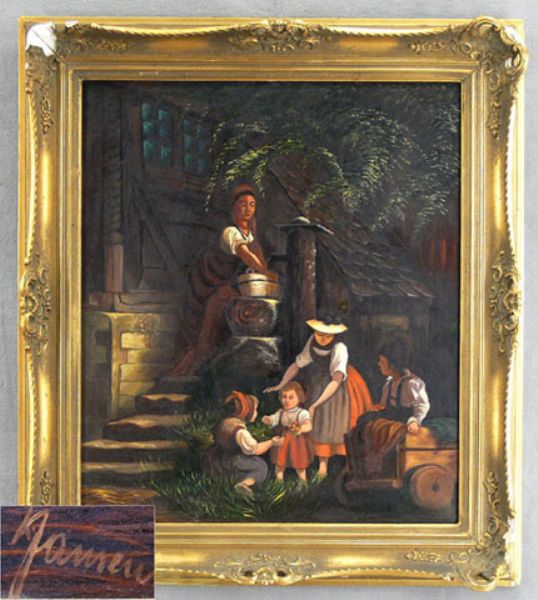Frauen mit Kindern am Brunnen im Schwarzwald