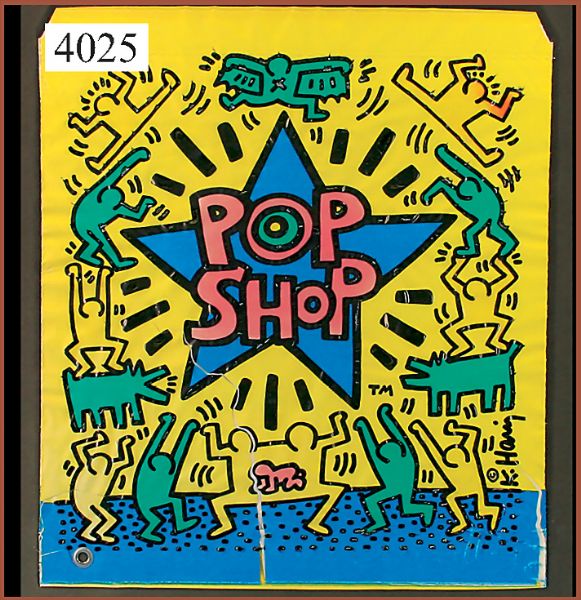 Original Tasche 'Pop Shop' hinter Glas gerahmt